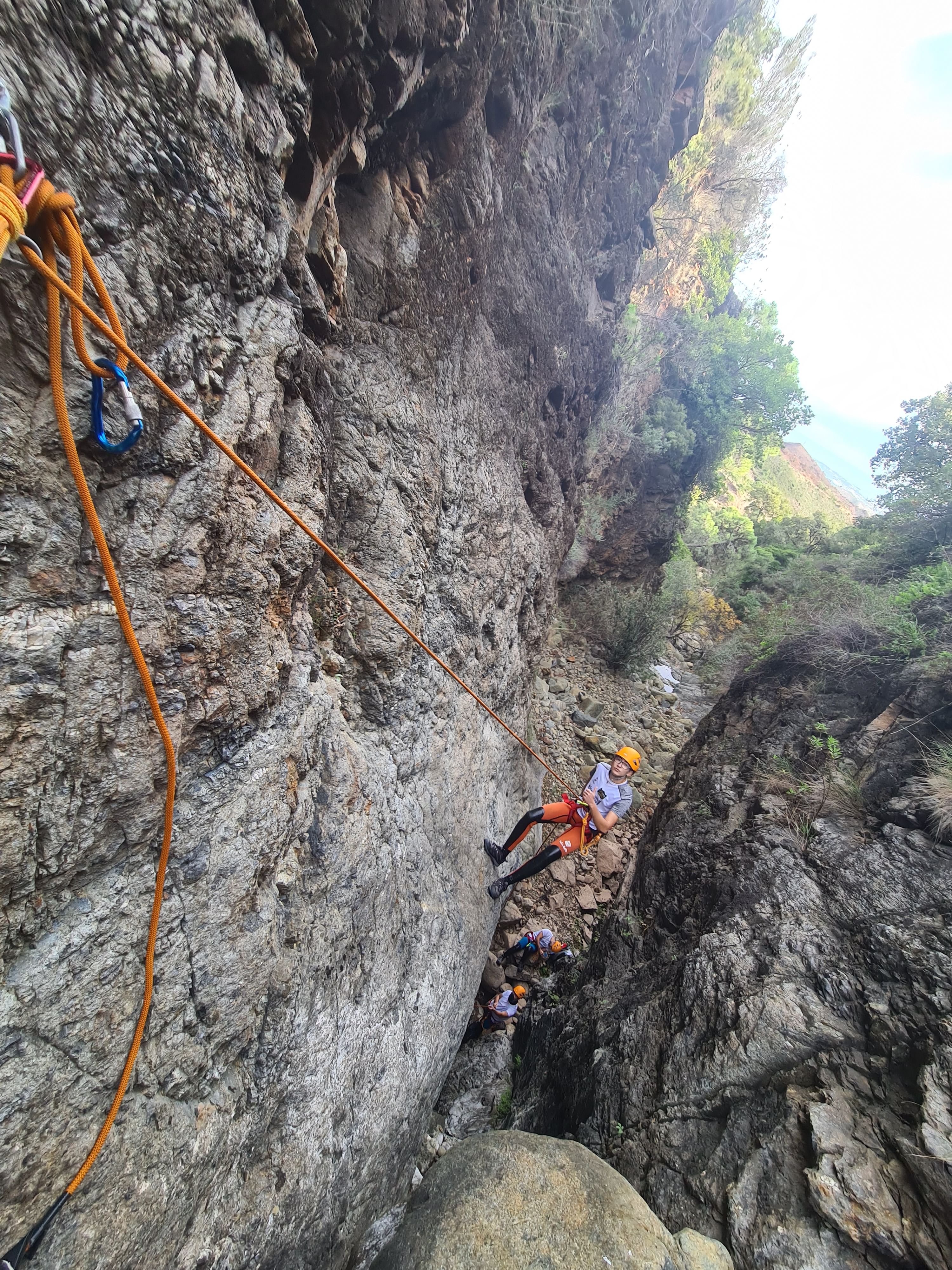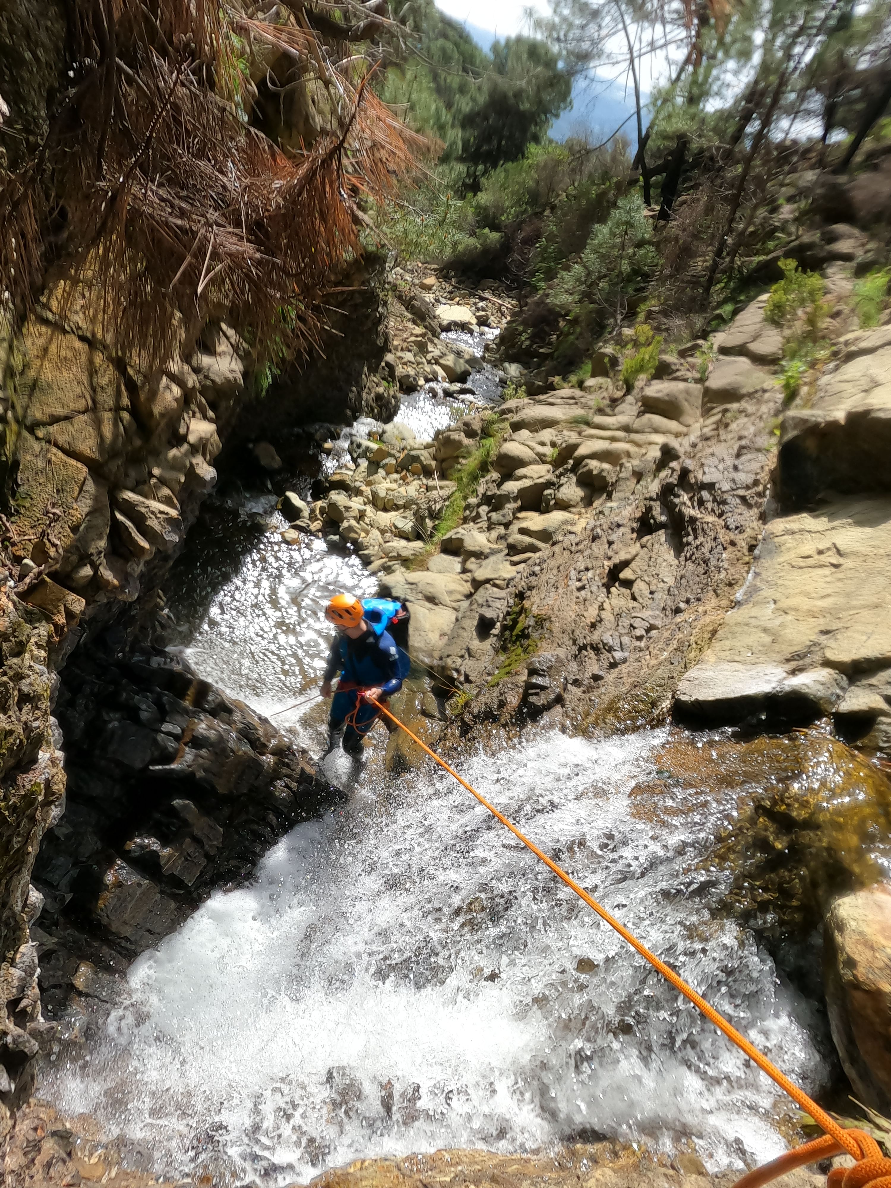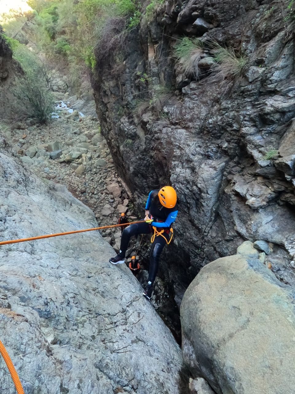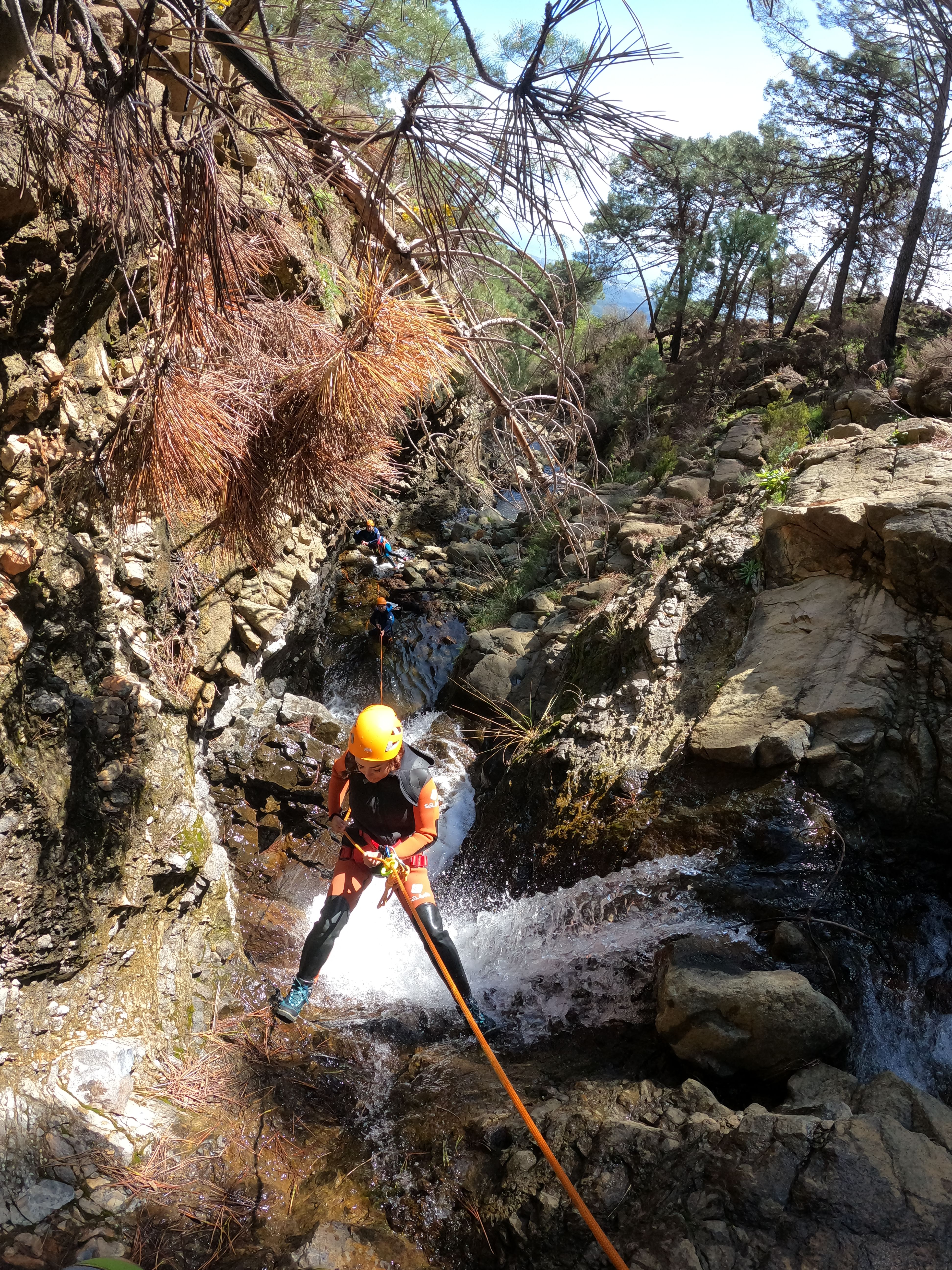 Il est idéal pour ceux qui connaissent déjà l'activité du canyoning et souhaitent en savoir plus sur ce sport. Au cours du parcours, nous surmonterons jusqu'à quatre rappels d'une hauteur maximale de 20 m, avec un niveau technique moyen. De plus, nous profiterons d'une perspective unique sur l'un des environnements les plus méconnus de la Costa del Sol.