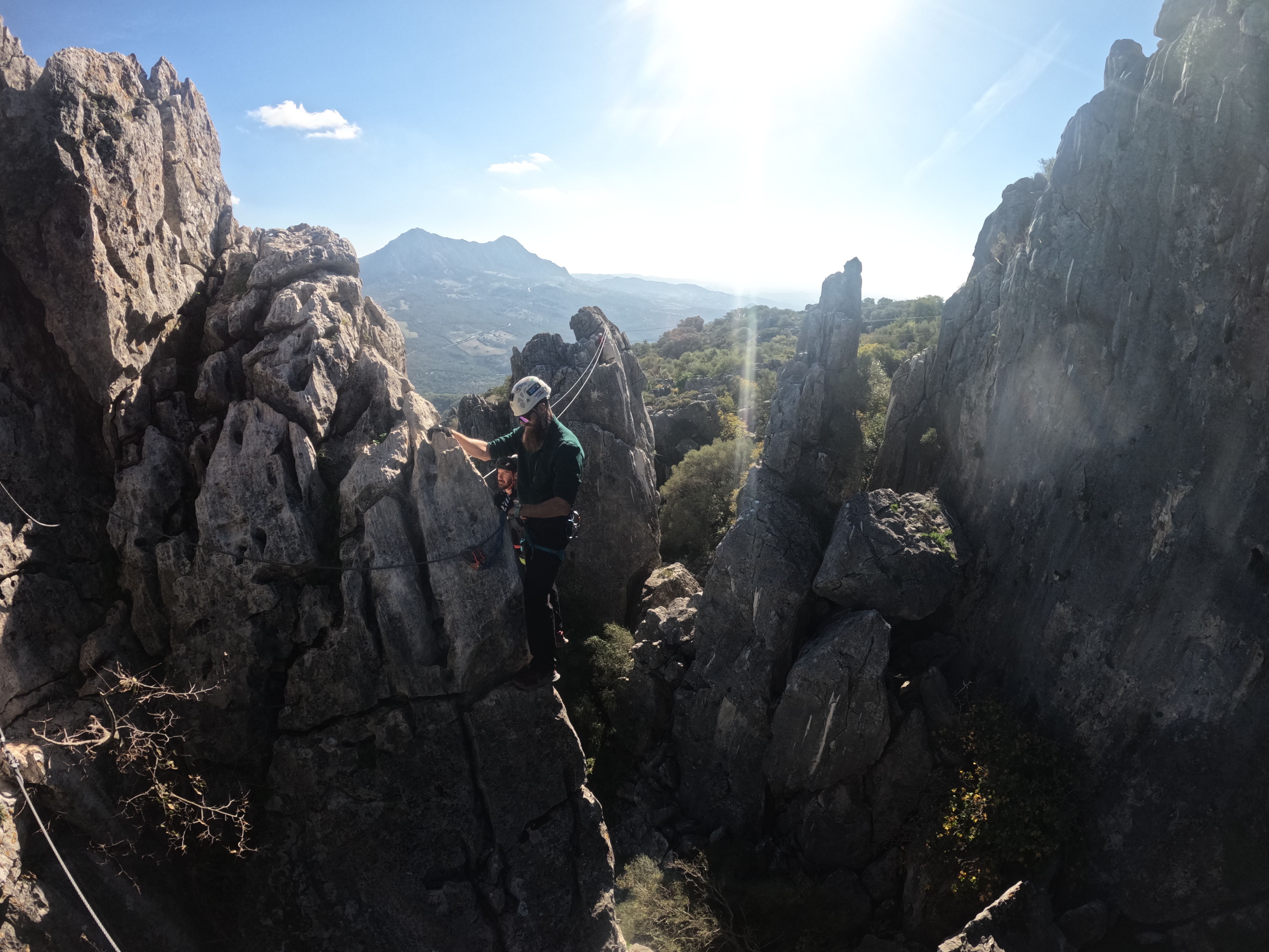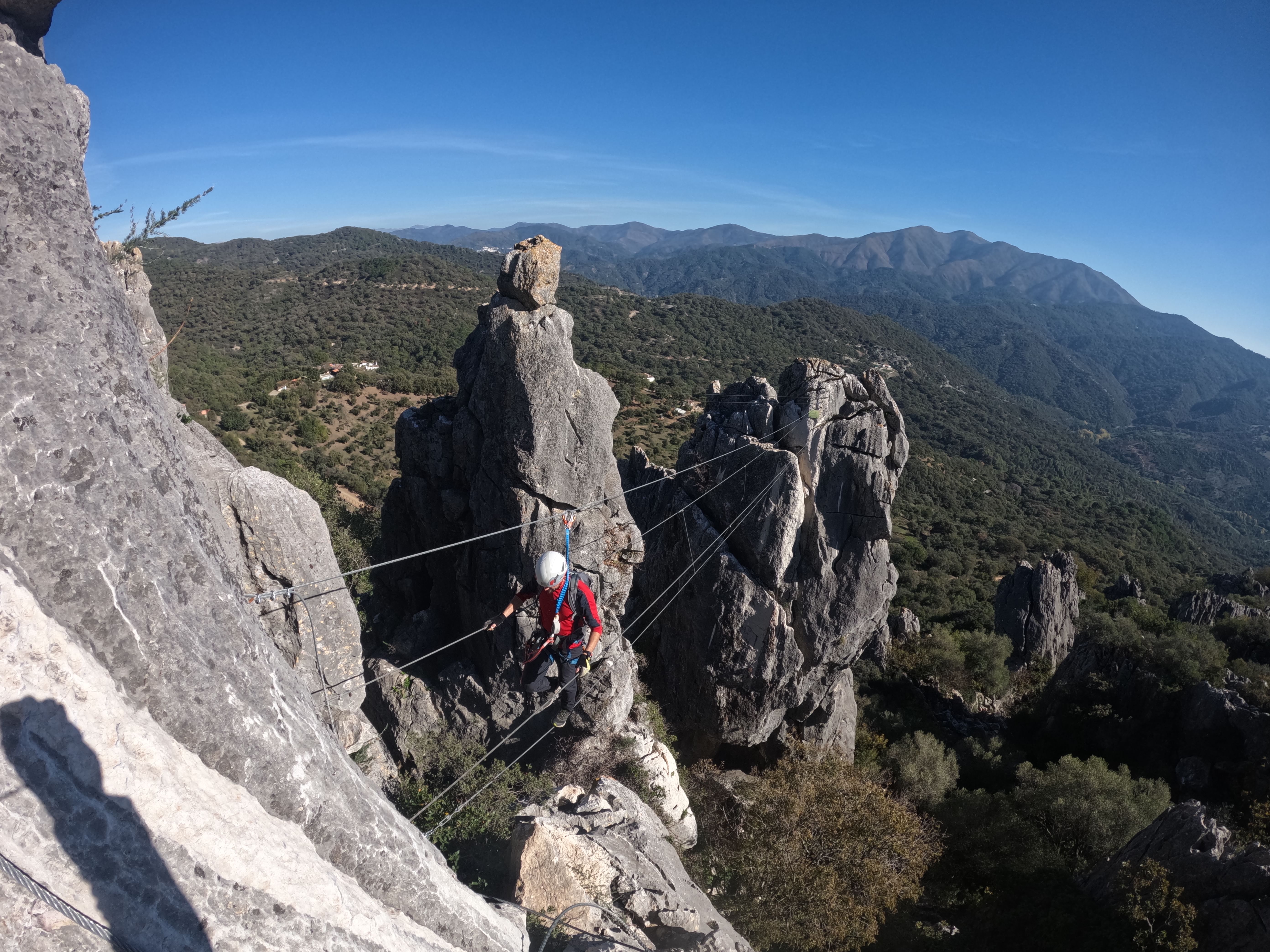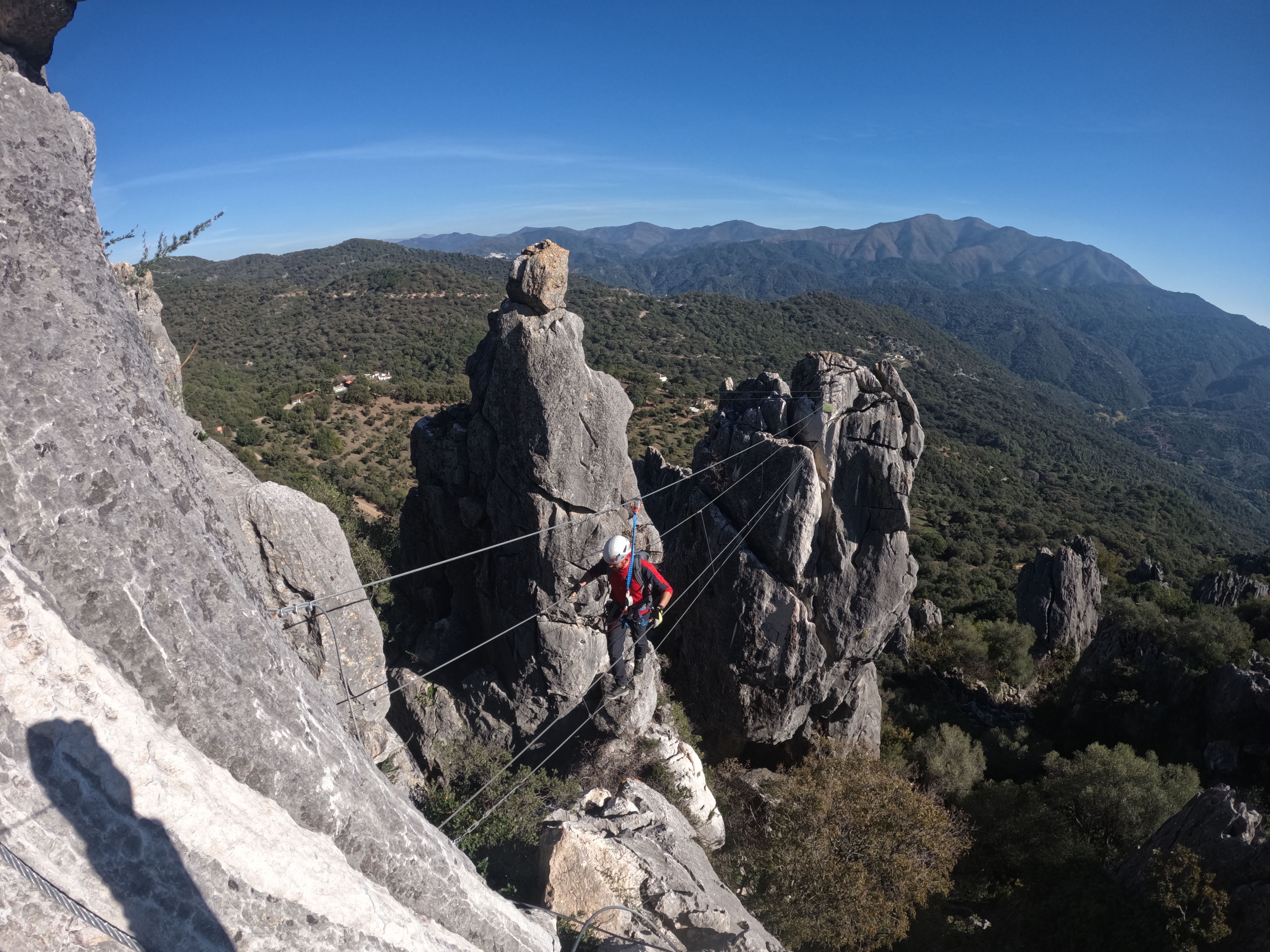 Grâce à l'emplacement et à l'orientation de la ferrata, nous profiterons d'une vue imprenable à 360° sur la Valle del Genal, la Sierra Bermeja, la Sierra Crestellina et, par temps clair, le détroit de Gibraltar et l'Afrique